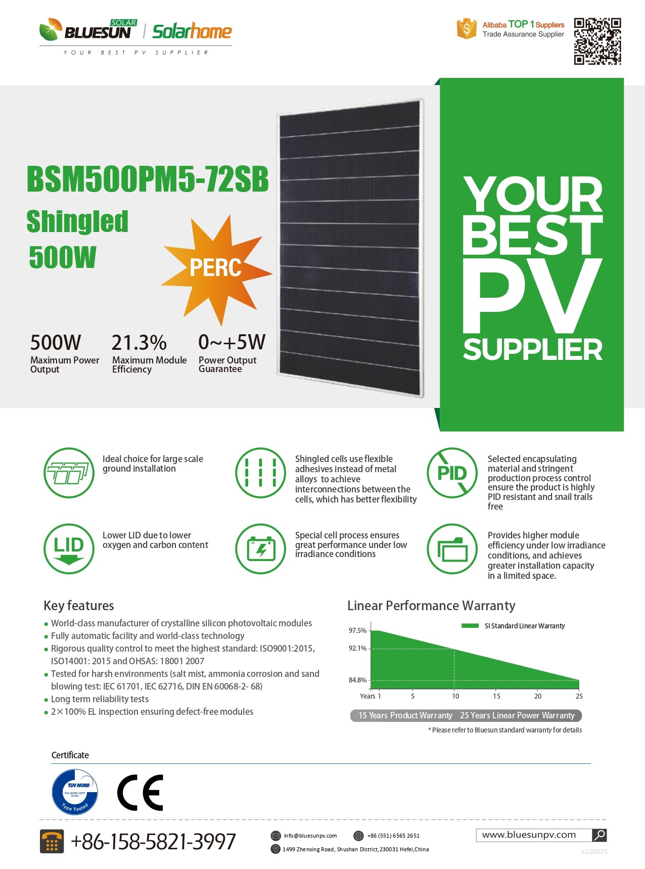 High efficient Bluesun Solar Energy module with SHINGLED technology - efficiency of up to 21.3%! The panels are perfect for the implementation of commercial PV installation projects on the ground and for the installation of installations for individual customers.