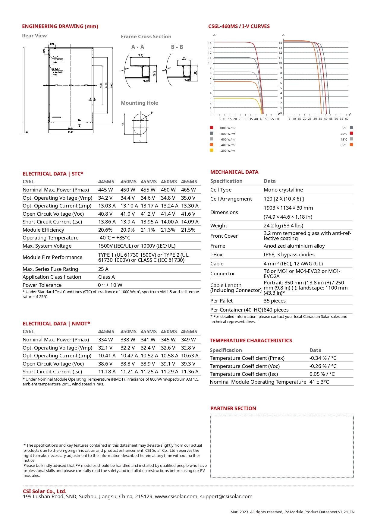 Efficient 460W Canadian Solar module (black frame). 25-year product and performance warranty, when installed on the roof of residential buildings. Efficiency of as much as 21.3% - for many years Tier-1, class A!