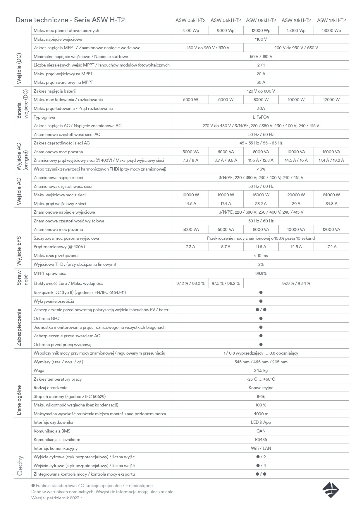 Hybrydowy falownik fotowoltaiczny z nowej serii Solplanet ASWH-T2. Aplikacja do monitorowania pracy naszej instalacji. Cichy, inteligentne zarządzanie energią, ponadczasowy design, klasa szczelności IP65. Integracja z magazynem energii.