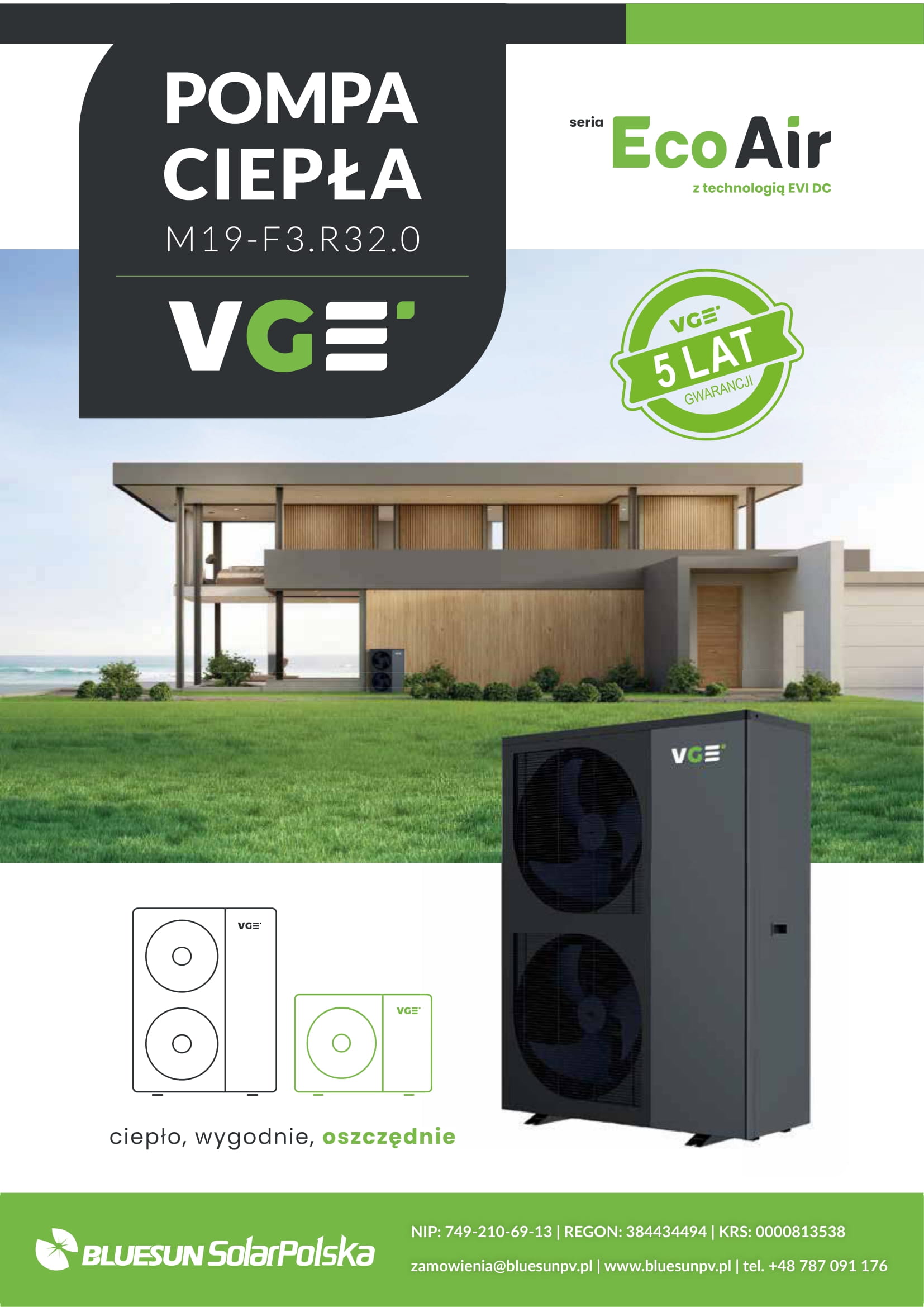 Design połączony z najwyższą jakością wykonania. Pompa ciepła od VGE to bezobsługowe, oszczędne rozwiązanie. Urządzenie zadba o komfort cieplny w pomieszczeniach i pozwoli Ci zapomnieć o ogrzewaniu gazem lub węglem!
