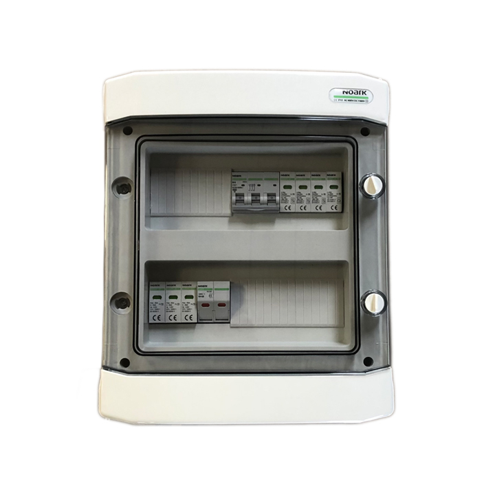 Rozdzielnica fotowoltaiczna z wyłącznikiem nadprądowym, ogranicznikiem przepięć po stronie AC/DC typu T2 oraz wkładką bezpiecznikową. W skrzynce zastosowane przewody solarne 6mm2 (zestaw zawiera złączki MC4).